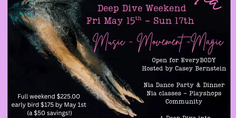 This playshop weekend Retreat with open to everyBODY: Nia teachers, interested Nia dancers, those wanting a NIa retreat weekend